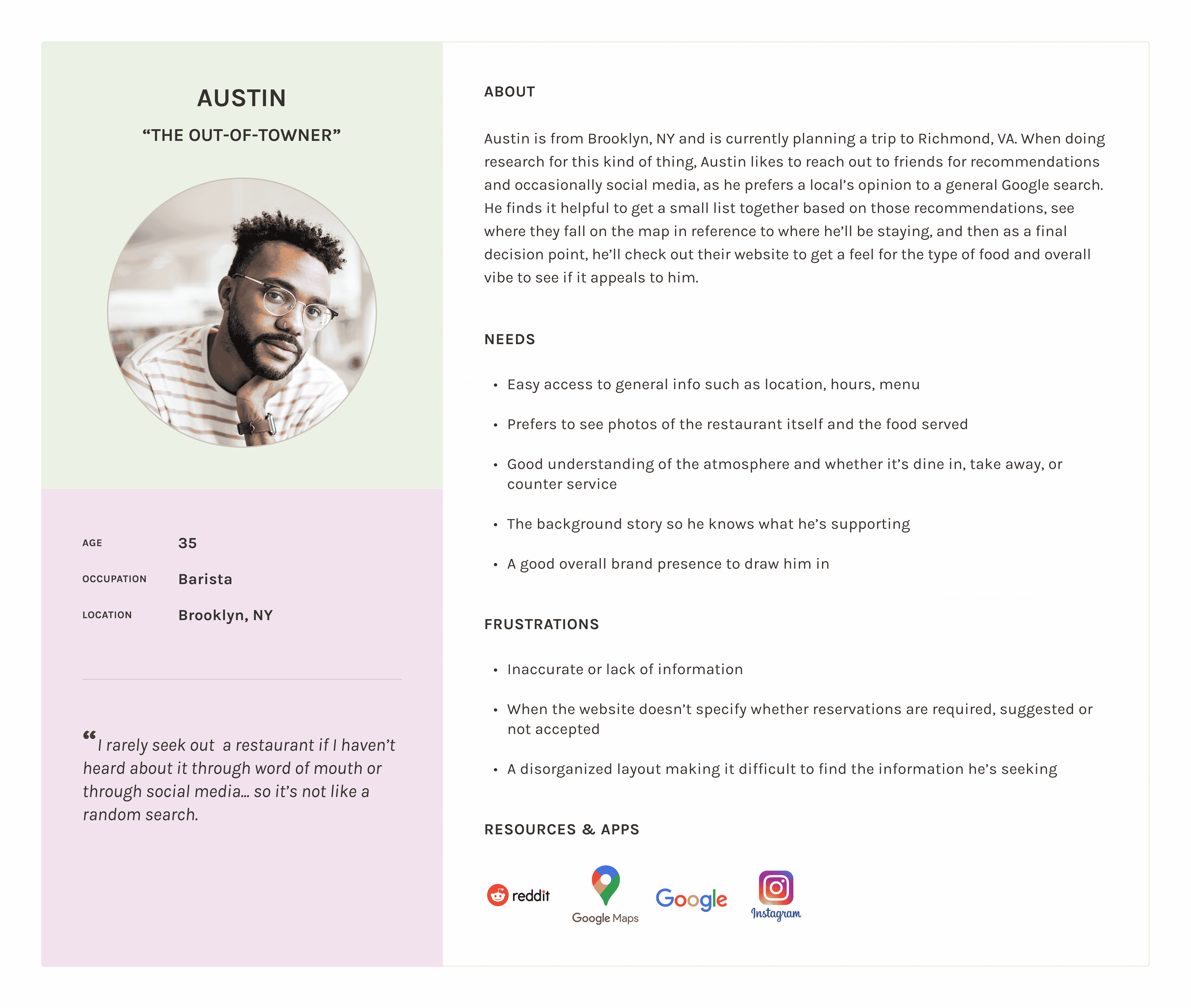 Next, I conducted interviews to learn how everyday people utilize a restaurant's website, and what affects their overall impression.