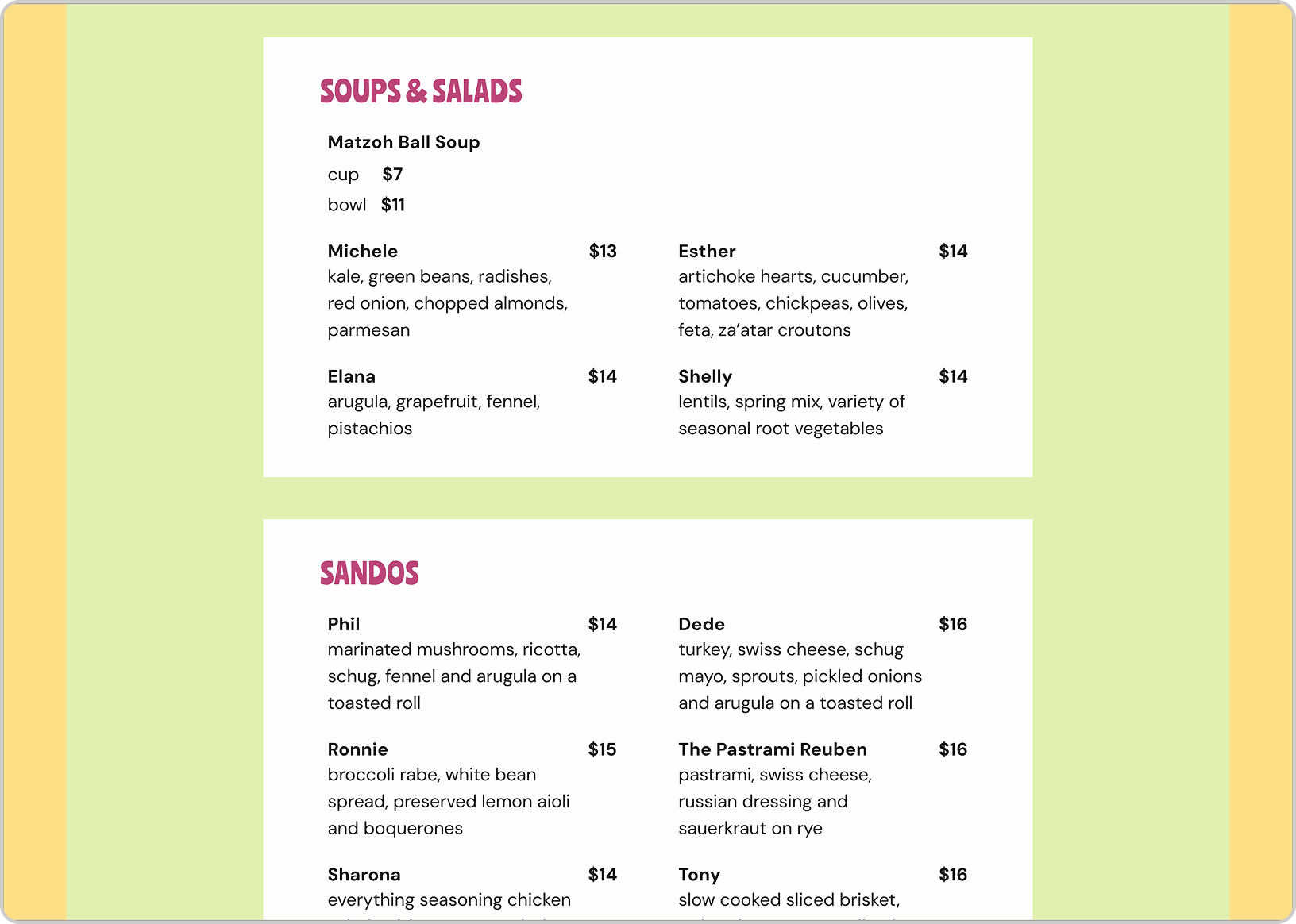 To maintain brand consistency across platforms, I gathered old menus from the Susie’s Instagram account to use as reference for the menu design.