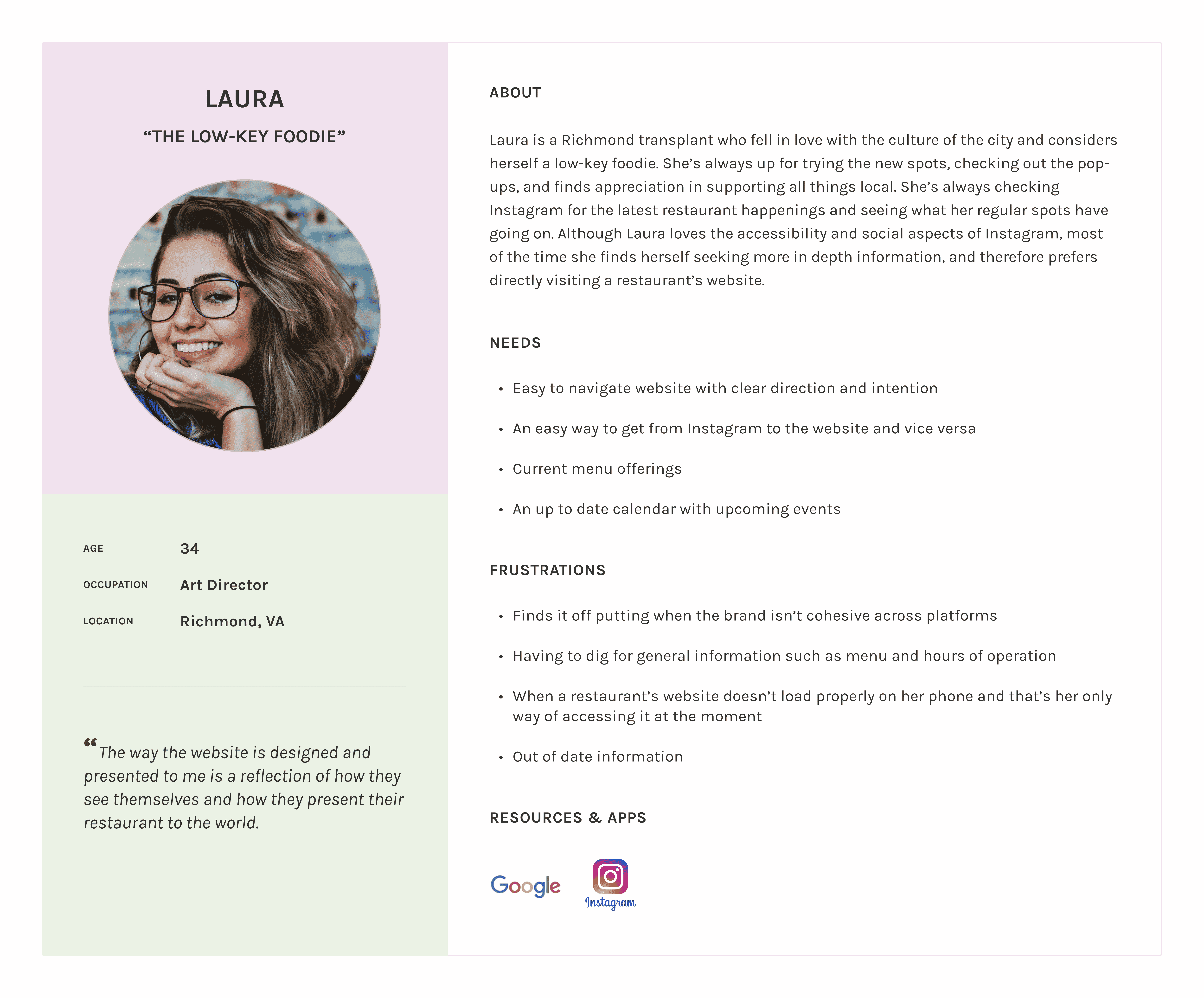 “If it gives off a vibe of the place through design and look and feel... the way the website is designed and presented to me is a reflection of how they see themselves and how they present their restaurant to the world.”
